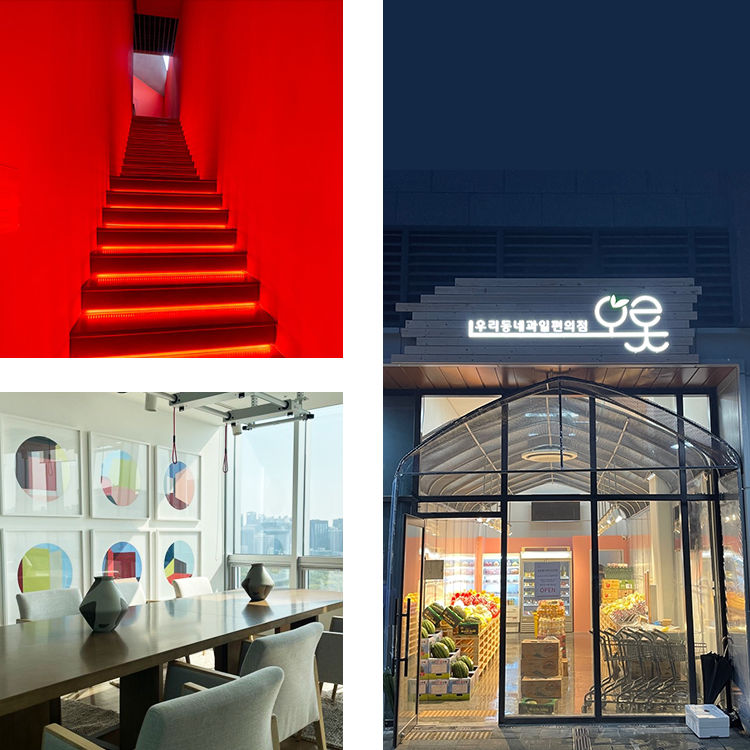 조명 연출에 관한 기획부터 설계, 시공까지 공간에 알맞는 연출로써 상상을 빛으로 실현합니다.