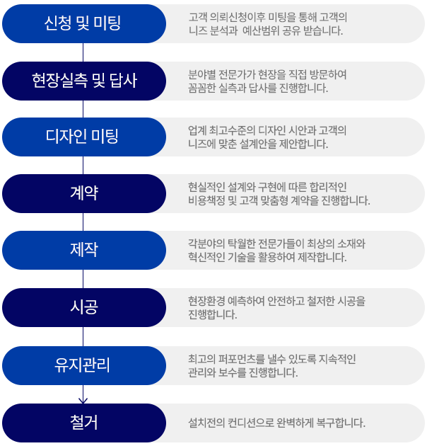 스마트하고 철저한 프로세스로 완벽한 시공과 사후관리를 약속합니다.